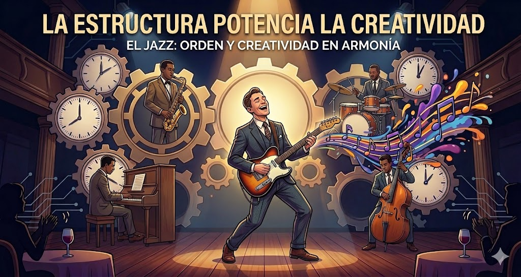 Puede que, al yo ser ingeniero y músico a la vez, me sea sencillo asimilarlo. En algún punto de mi vida estudié jazz. Tomaba mi guitarra y seguía estándares de jazz. Recuerdo que la composición de las piezas consistía en tocar las partituras tal cual venía en las hojas. Existían reglas como la tonalidad, tiempo y escala. Existía un orden. Luego se abrían espacios para la improvisación y explotar la creatividad al máximo, lo cual hace que cada interpretación de la pieza sea única e irrepetible. Incluso en bandas de jazz se dan espacios para que cada músico muestre su mejor talento, momento en el cual cada miembro de la banda es puesto bajo la luz del escenario. La creatividad estaba montada sobre una base. El jazz es un género que requiere mucha disciplina, mucho estudio, pero a su vez, requiere ser lo más creativo del universo.